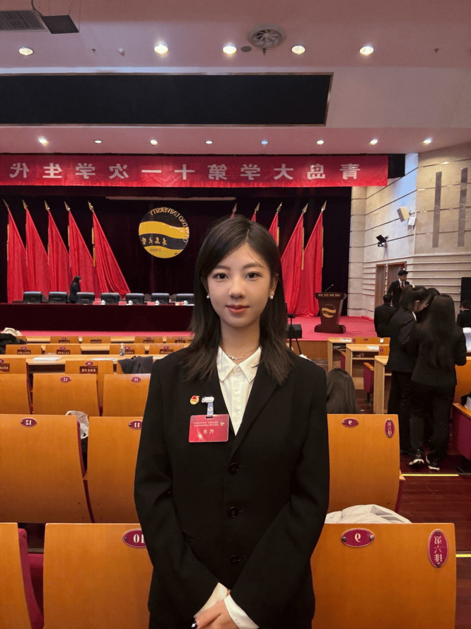 赵雯婧,党员,历史学院2025级中国史研究生,保研辅导员,曾任学院学生会执行主席和班级班长。她躬身践行“明德、博学、守正、出奇”的校训精神,坚持德智体美劳全面发展,在校期间成绩位居前列,获青岛大学校长奖学金1次,学习优秀一等奖学金7次,并注重创新实践,获得创新创业竞赛省部级奖励5项,校院级奖励10余项。她热心志愿公益与社会实践,积极投身暑期新疆支教与海军博物馆志愿讲解等,生动诠释了新时代青年的责任与担当,荣获“山东省优秀学生干部”、山东省“三下乡”社会实践优秀学生、青岛大学“十佳优秀学生干部”和“十佳优秀青年志愿者”等多项荣誉称号。