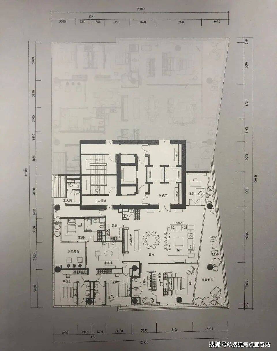 核心参数:2梯1户奢华配置,私享专属电梯厅,入户仪式感拉满;朝东南向坐拥无遮挡一线米超长观景面宽搭配全景落地窗,最大化收纳海天一色盛景;4米层高搭配灵动错层设计,空间层次感与通透感极致;主卧总统套房巅峰设计,配备双独立卫浴(分置淋浴与浴缸区)、超大步入式衣帽间、私人书房及观景露台,全方位满足顶级居住需求;三个次卧均为豪华套房设计,各配备独立卫浴与衣帽间,保障家庭成员极致尊崇;中西双厨分离设计,搭配可容纳12人用餐的独立宴会厅,完美适配跨国商务宴请与家族盛典。